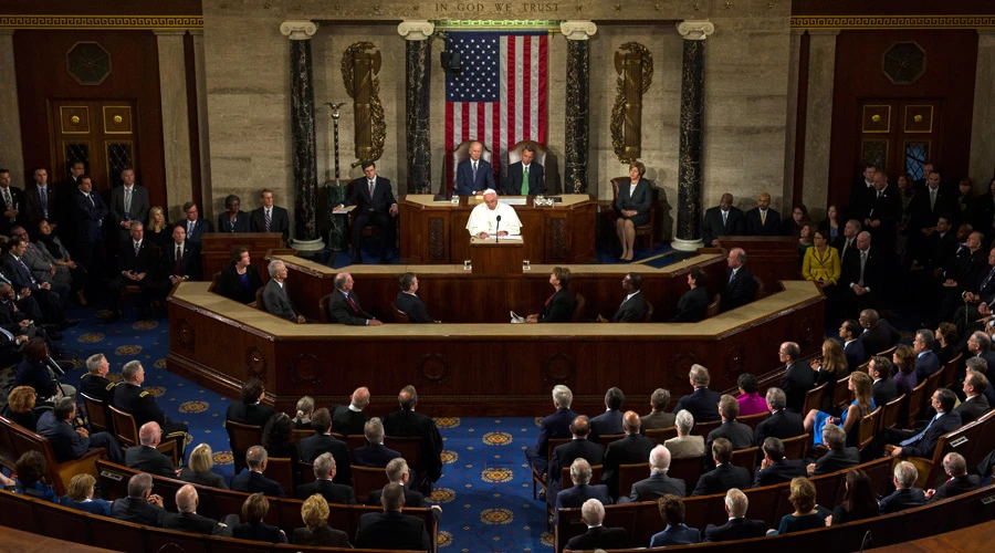 WASHINGTON D.C., 24 Sep. 15 / 03:14 pm (ACI).- El Papa Francisco se convirtió este jueves en el primer Pontífice en ofrecer un discurso en el Capitolio de Washington D.C. En su histórico mensaje, dirigido a una sesión conjunta de la Cámara de Representantes y el Senado, presentó los retos que considera cruciales afrontar desde Estados Unidos: el extremismo ideológico; la crisis de los refugiados; la situación de los inmigrantes; la abolición de la pena de muerte; la función de los políticos; la necesidad de una economía solidaria y la defensa de la vida y la familia.