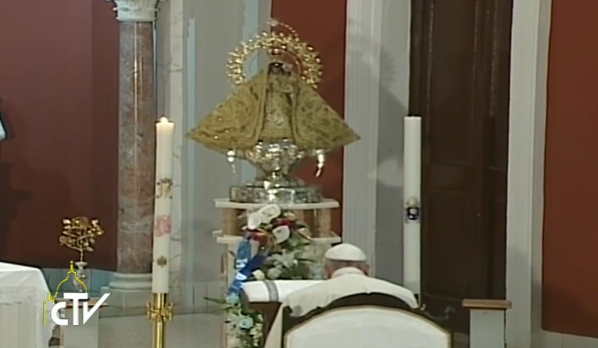 SANTIAGO DE CUBA, 21 Sep. 15 / 07:34 pm (ACI).- En el tercer día de su viaje apostólico en Cuba, el Papa Francisco visitó el Santuario de la Virgen de la Caridad del Cobre en Santiago de Cuba para rezar ante la imagen original de esta adovación de la Madre de Dios.